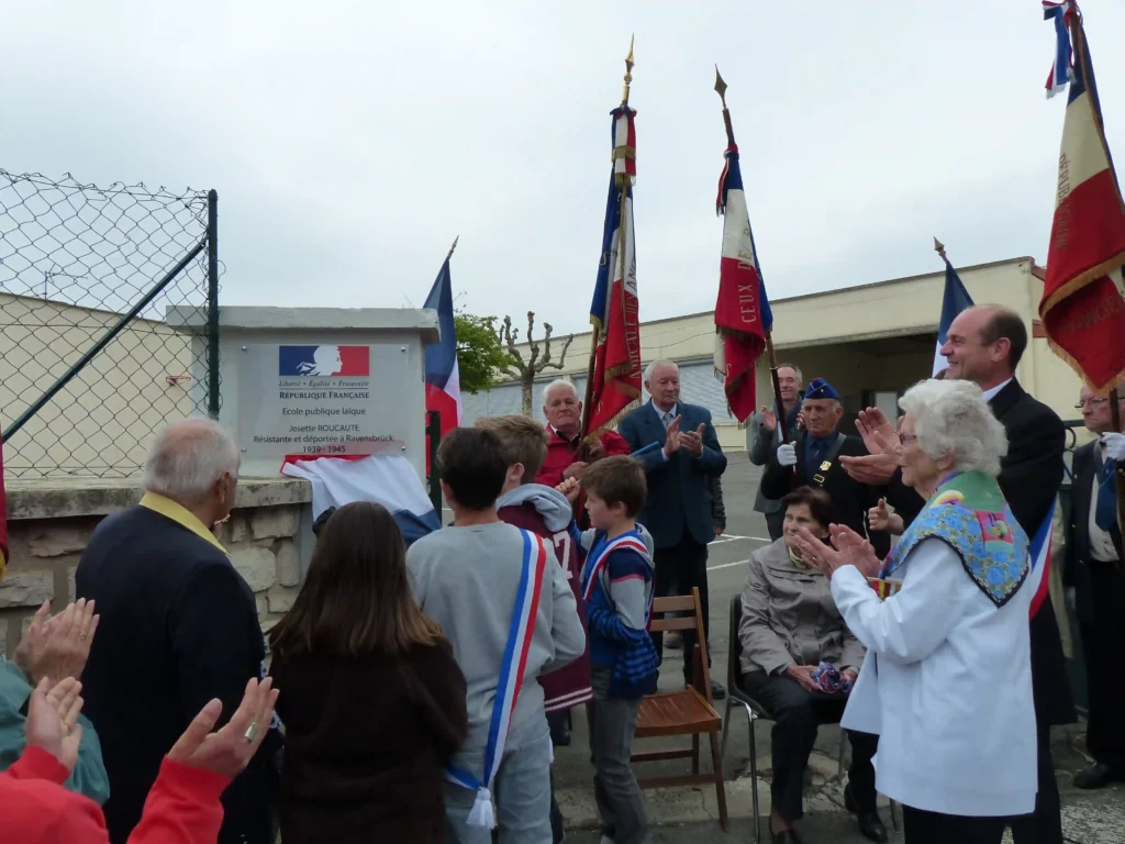 A l’issue d’une cérémonie de nomination le 25 avril 2015, l’école prend le nom de Josette Roucaute[8], déportée à Ravensbrück durant la Seconde Guerre mondiale. Elle déclare : « Je suis ni fière, ni honorée qu’une école porte mon nom mais plutôt satisfaite que les générations futures n’oublient pas, en voyant cette plaque, ce qu’il s’est passé. Pour cela, je remercie vivement le maire et son conseil municipal à l’initiative de cette proposition ».