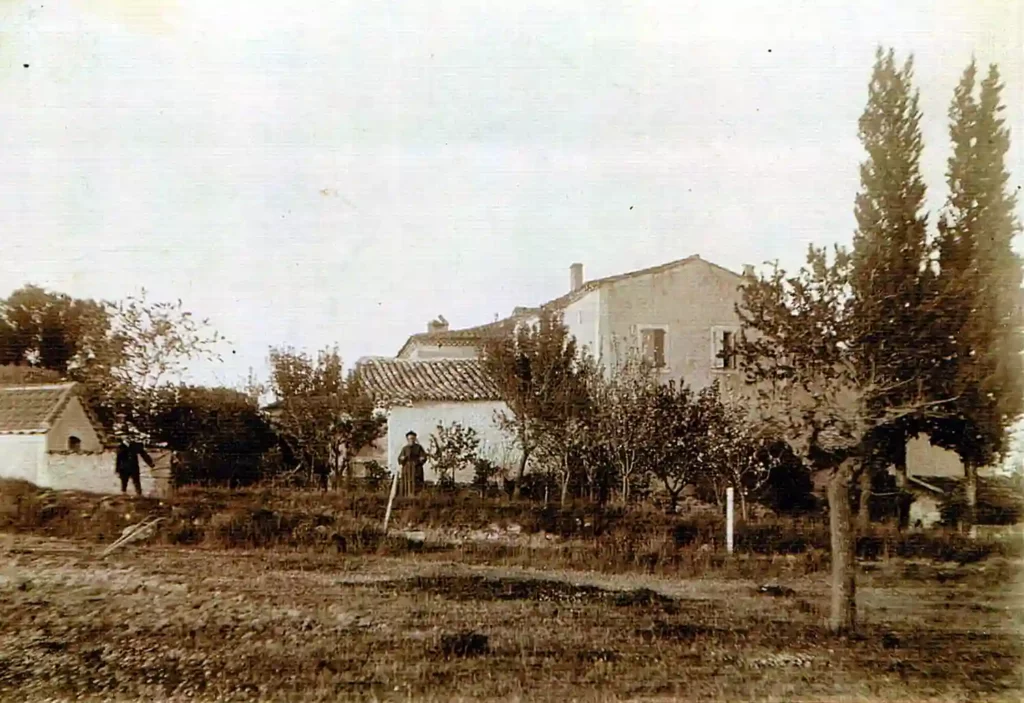 La plupart des maisons du hameau datent du début du XIXème siècle. Elles étaient occupées par des agriculteurs qui possédaient tous des animaux, logés au rez-de-chaussée ; les maisons abritaient aussi des cuves à vin (souvent encore existantes) et des greniers pour stocker la paille. En venant du four à chaux, la maison de gauche possédait une passerelle pour rejoindre la grange et les cuves à vin, de l’autre côté de la rue. Au milieu du hameau se trouvait une forge. En face, le mas renfermait un cimetière privé à son entrée et un beau parc avec des palmiers.