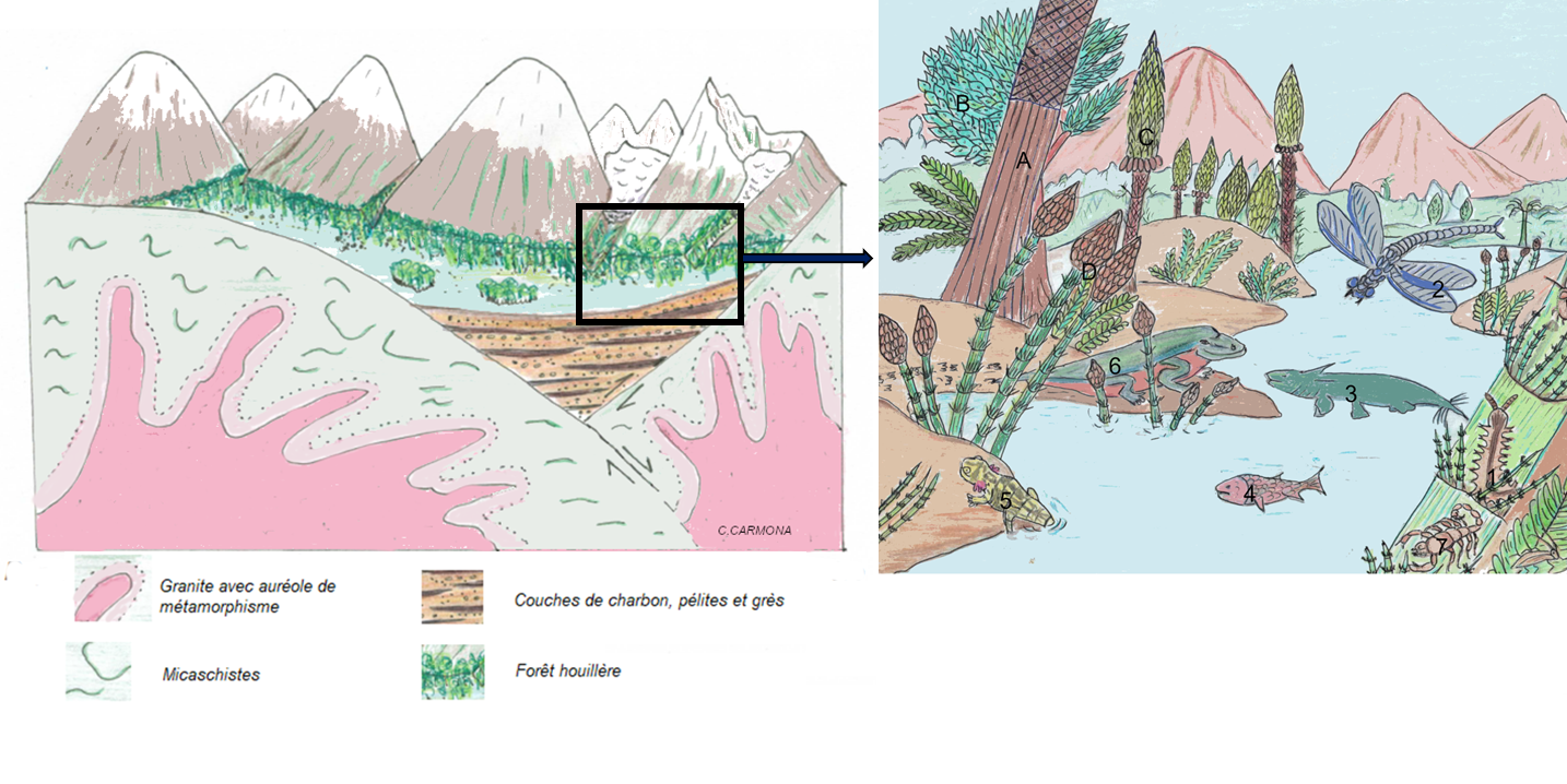 [3] Le Carbonifère est une période géologique du Paléozoïque (de −359 à −299 millions d’années) caractérisée par la formation abondante de charbon