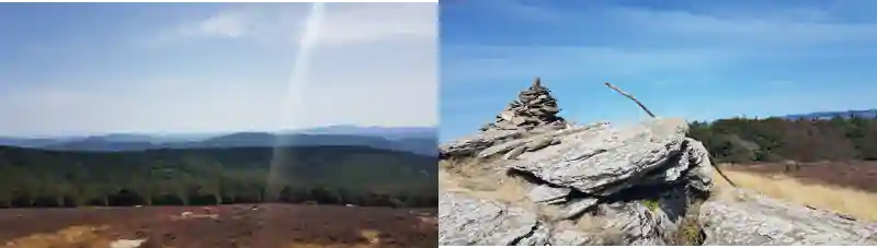 Fig.3 Photographies du panorama vu du sommet du Bougès et des blocs de micaschiste..